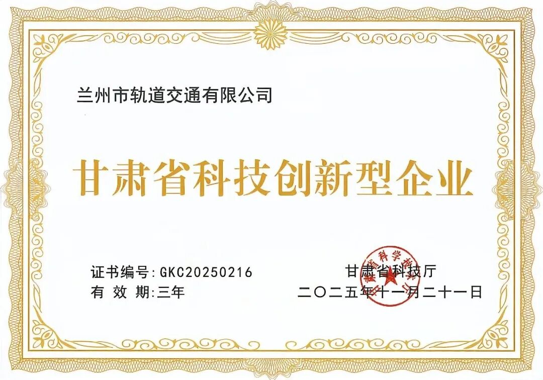 兰州市轨道公司获评2025年度“甘肃省科技创新型企业”