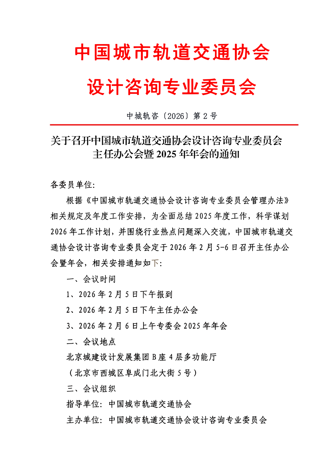关于召开中国城市轨道交通协会设计咨询专业委员会主任办公会暨2025年年会的通知